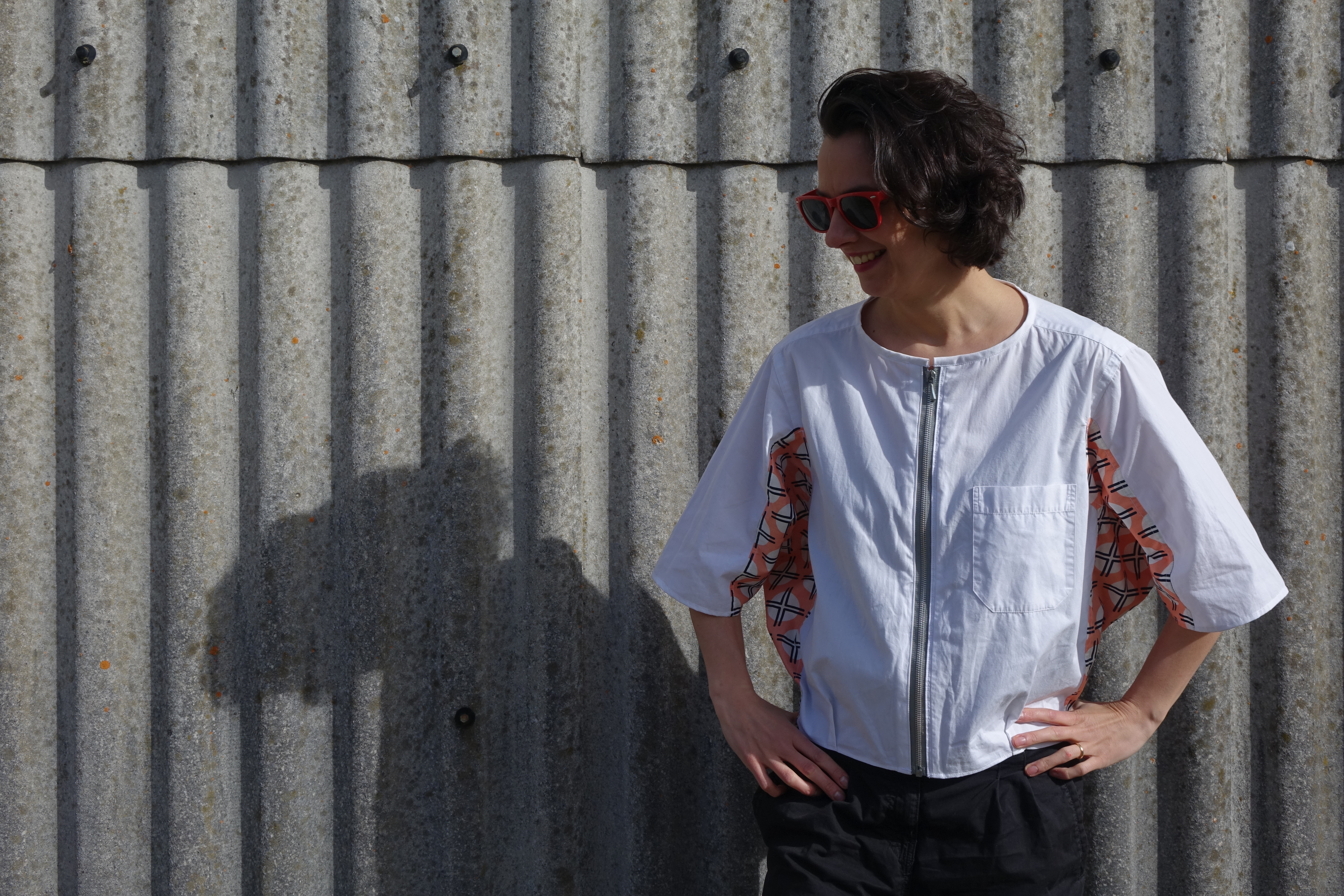 Als David das Hemd zur Altkleidersammlung bringen wollte, habe ich es wieder herausgezogen und es umgeändert. Den gemusterten Stoff habe ich neu gekauft in meinem Lieblingsstoffladen Stoff&Co in München.